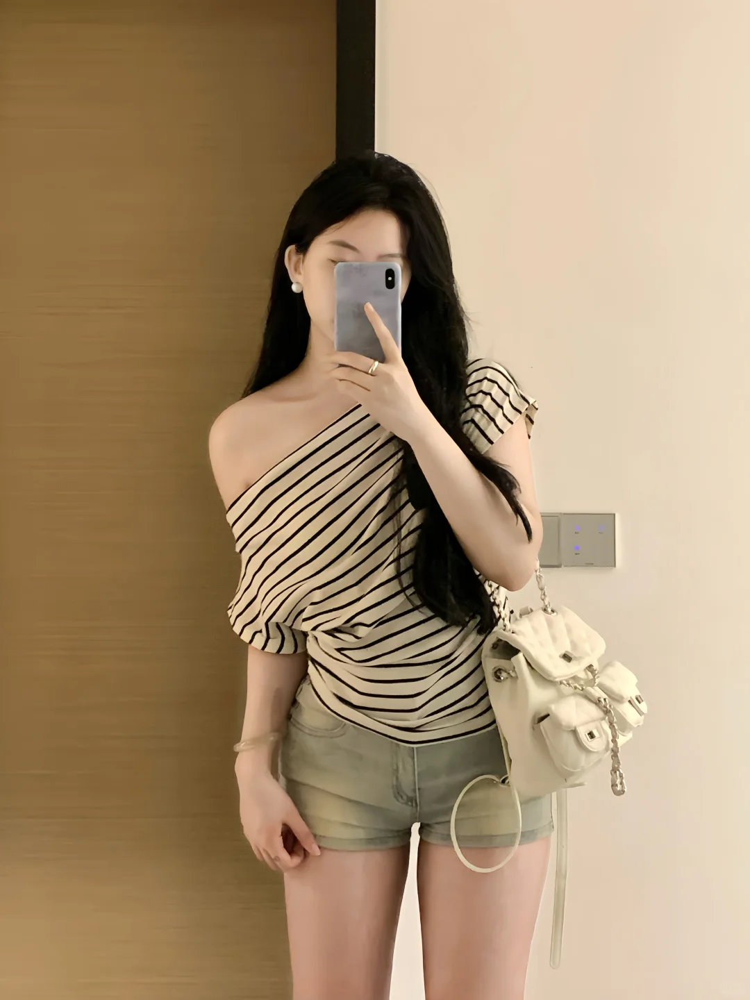 165/120 微胖穿搭 斜肩小上衣我超爱