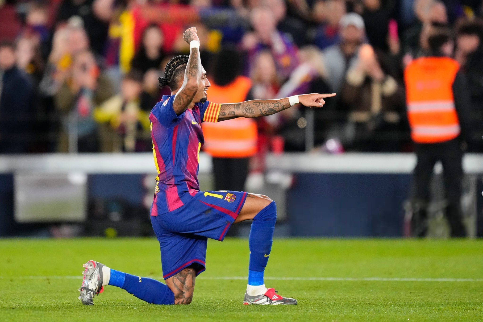 每体:队长拉菲尼亚无论在哪都毫不松懈地与奥萨苏纳战斗——他以勇气和果断带领巴塞罗