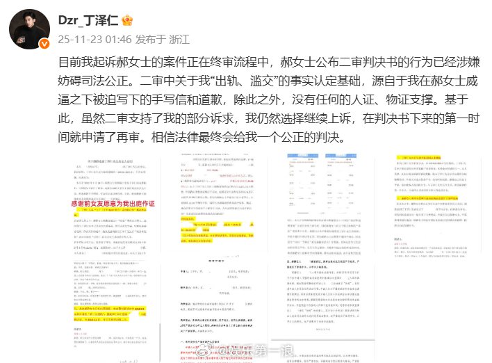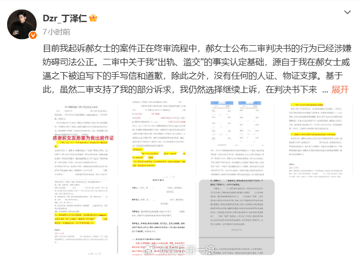 22日, 再发文回应“唯一的姐”相关争议,丁泽仁否认对方为他花了300万,并表示