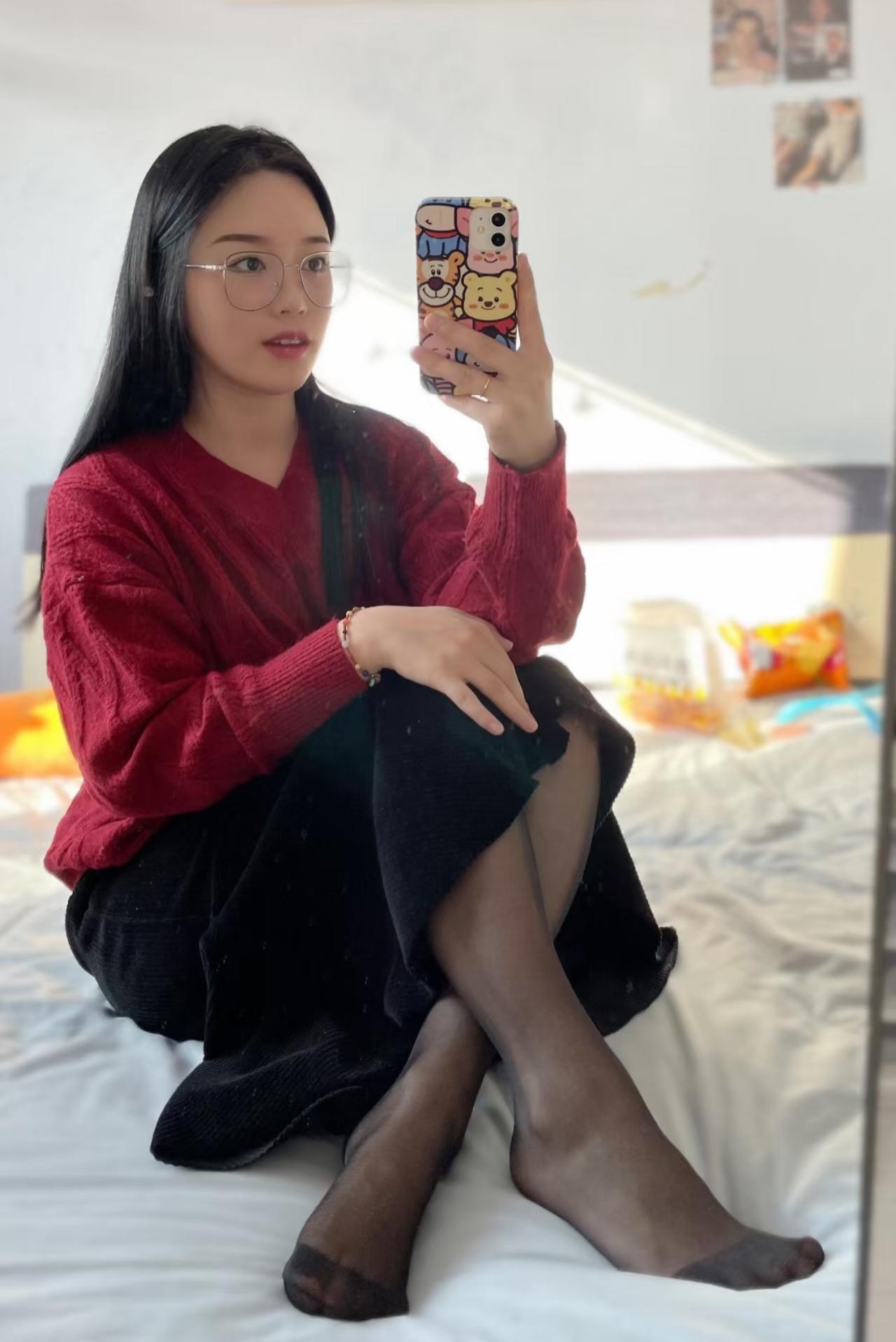 黑色短裙搭配高跟鞋,手拿白色购物袋,优雅出街。