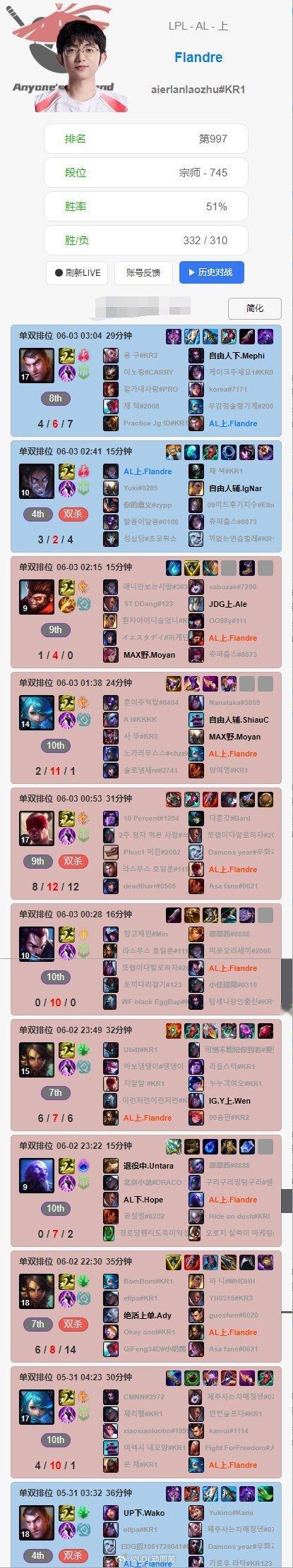 韩服排行榜更新:TES打野naiyou以2041分登顶韩服!大奶油韩服排位那么猛