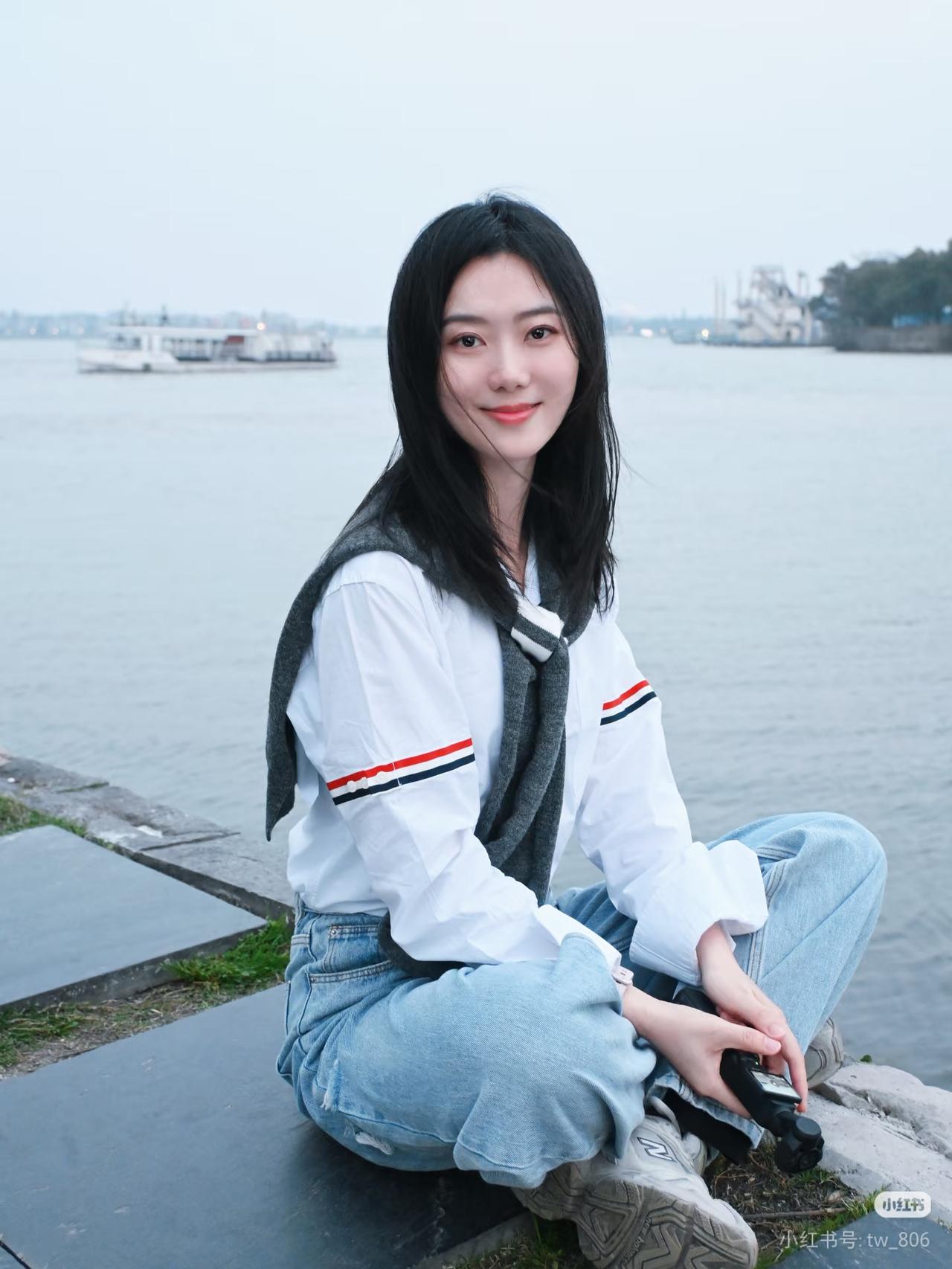 美人倚长凳,笑语如春风。