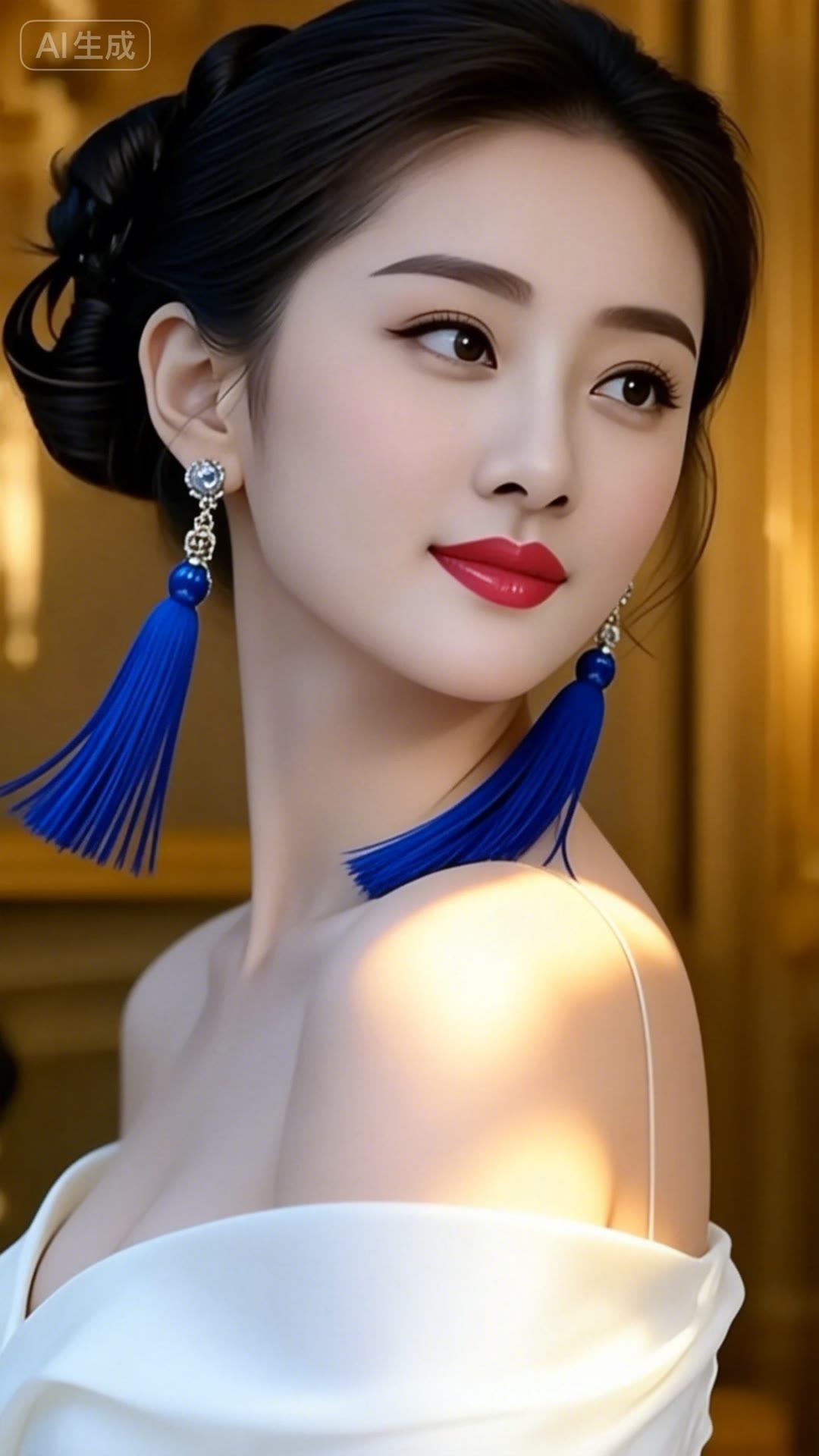 优雅蓝裙,红唇魅惑,闪耀耳环,气质满分!💄✨