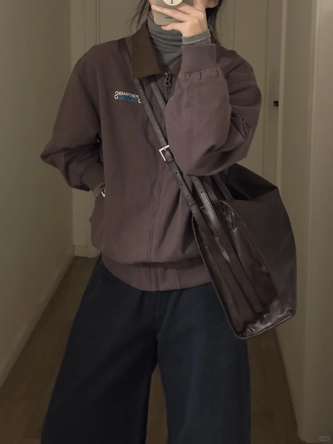 好秋冬美式复古休闲灰紫夹克外套叠穿🍆