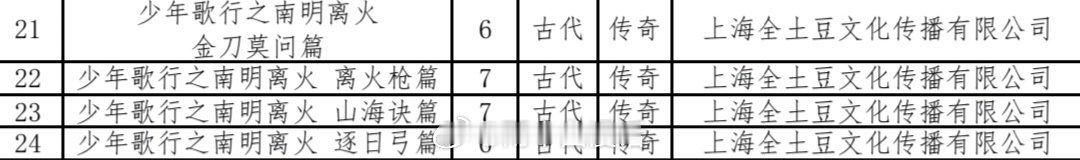影视剧少年歌行[超话]网剧少年歌行 《南明离火》动画备案表出来了。从表中我们可以