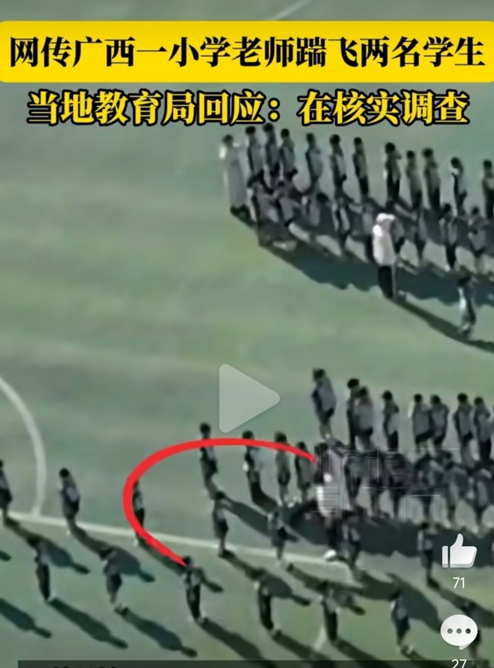 曝广西一小学老师踹飞两名学生网传广西一小学老师在操场踹飞学生的视频,看得人揪心