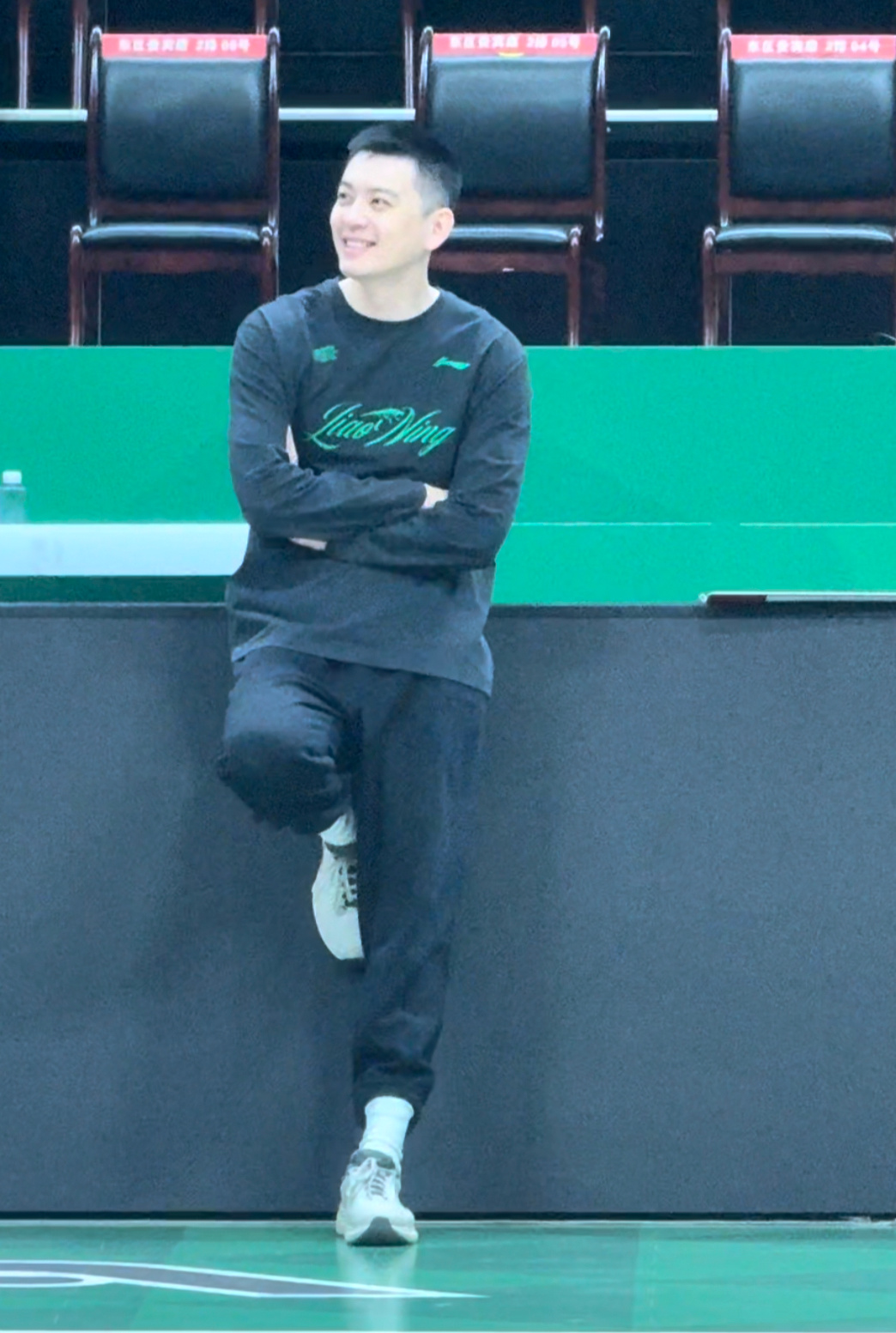 这张图片正好拍到了杨指导的笑容辽宁男篮