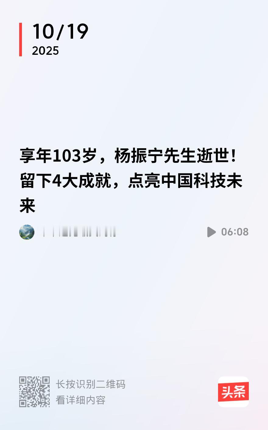 2025年10月18日,103岁的杨振宁先生在北京逝世,这位物理界的"超级巨星"