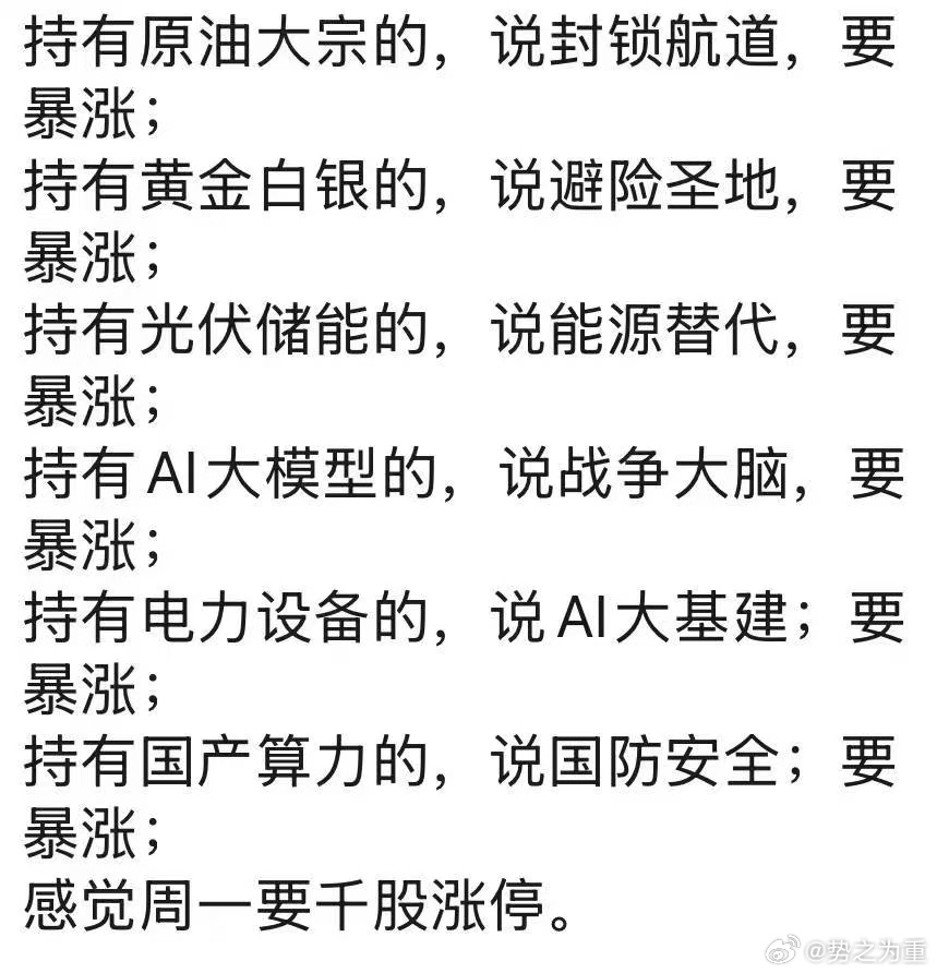 不管内伊是否真的死了,美以目标已达到,下周一开盘,大类资产的叙事又要重写了。