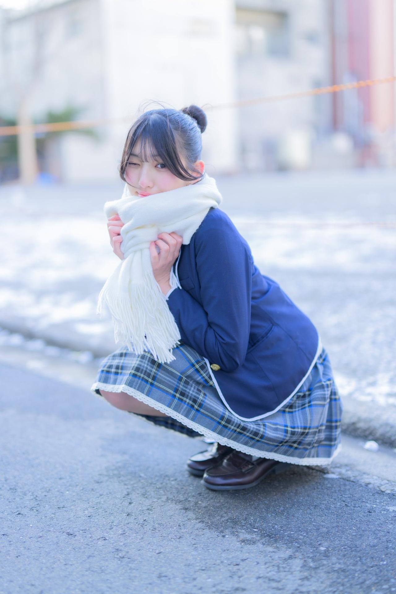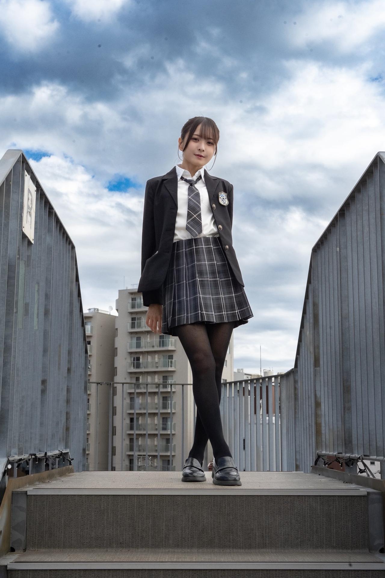 少女校服映日红,青春洋溢笑语中。