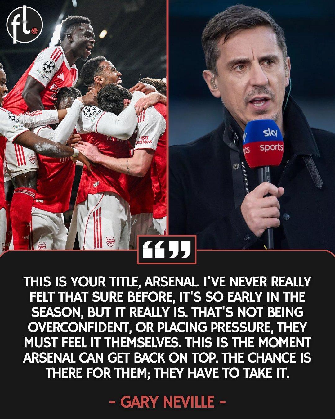 【阿森纳是冠军😂】加里-内维尔:“阿森纳,这冠军是你们的了。虽然赛季才刚刚开始