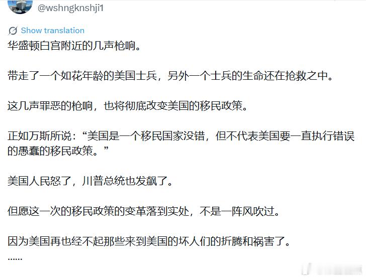 美国公民及移民服务局(USCIS)在华盛顿特区发生阿富汗人恐布袭击事件后,立即停