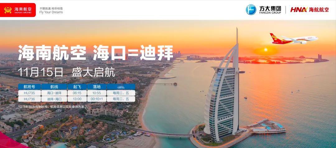 【海南航空计划开通海口—迪拜航线】 海南航空计划于2024年11月15日起新开海