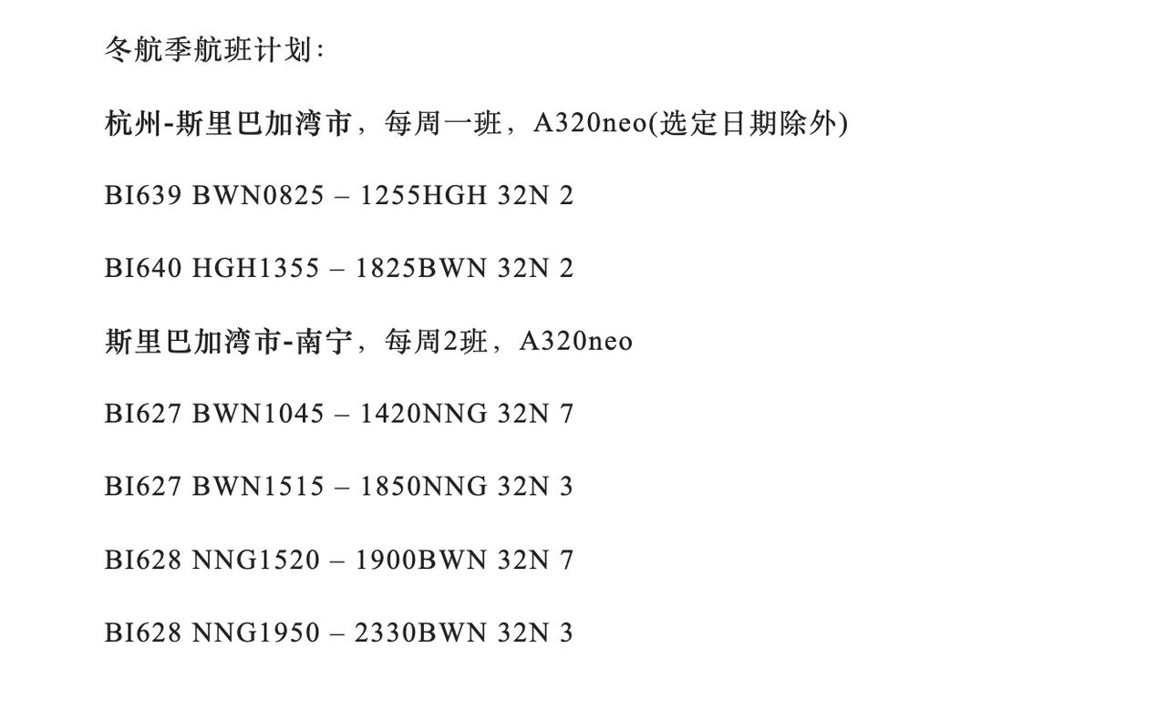 【文莱皇家航空调整中国航线航班计划】 自10月27日起,文莱航空公司将继续运营飞